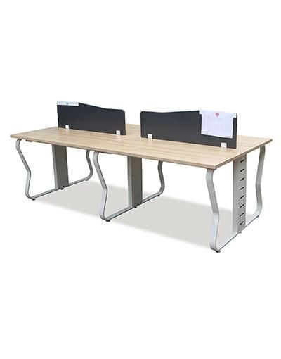 - Bàn 1903B12-4KT có thiết kế thanh thoát phù hợp với các văn phòng làm việc năng động hiện đại Chân sắt tấm gấp, thanh giằng hộp 25x50 được liên kết với nhau bằng khớp nối nhôm. Phần sắt sơn tĩnh điện màu kem, chân bàn có tích hợp hộp kỹ thuật Mặt bàn gỗ công nghiệp phủ Melamine, mặt bàn dày 25mm, có nhiều màu sắc lựa chọn (không bao gồm nắp bịt mặt bàn, vách ngăn, phụ kiện) Cấu trúc sản phẩm Kích thước: W2400xD1200xH750 mm Màu sắc: M1, M2, M3, M4, M5, M6, M7, MG, MV Chất liệu: Gỗ công nghiệp phủ Melamine, chân sắt sơn tĩnh điện