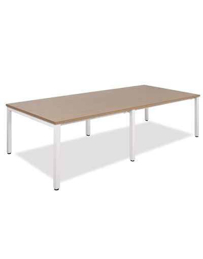 - Bàn 1905B12-4 có thiết kế thanh thoát phù hợp với các văn phòng làm việc năng động hiện đại Chân sắt và thanh giằng hộp 50x50 được liên kết với nhau bằng khớp nối, tạo độ chắc chắn cho kết cấu bàn mà vẫn đảm bảo thẩm mỹ. Phần sắt sơn tĩnh điện màu trắng. Mặt bàn gỗ công nghiệp phủ Melamine, mặt bàn dày 25mm, có nhiều màu sắc lựa chọn Cấu trúc sản phẩm Kích thước: W2400xD1200xH750 mm Màu sắc: M1, M2, M3, M4, M5, M6, M7, MG, MV Chất liệu: Gỗ công nghiệp MFC, chân sơn tĩnh điện