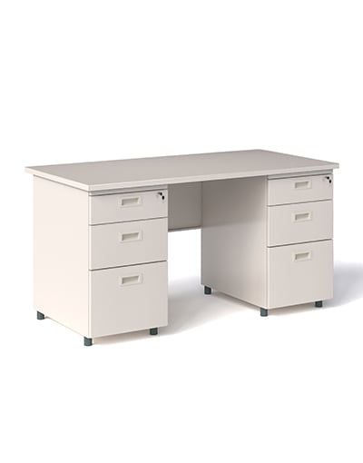 - Bàn BSS14H3 thuộc dòng bàn sắt hộc liền 1,4m không khay. Người sử dụng có thể lắp thêm 1 khay tùy ý theo nhu cầu. Cấu trúc sản phẩm Kích thước: W1400xD700xH735/750mm. Màu sắc: Bàn sắt màu kem mang lại sự trang nhã, nhẹ nhàng Chất liệu: Bàn sắt 2 hộc liền 3 ngăn kéo HBS3, mặt bàn, hộc và yếm làm từ thép tấm gấp sơn tĩnh điện màu kem.