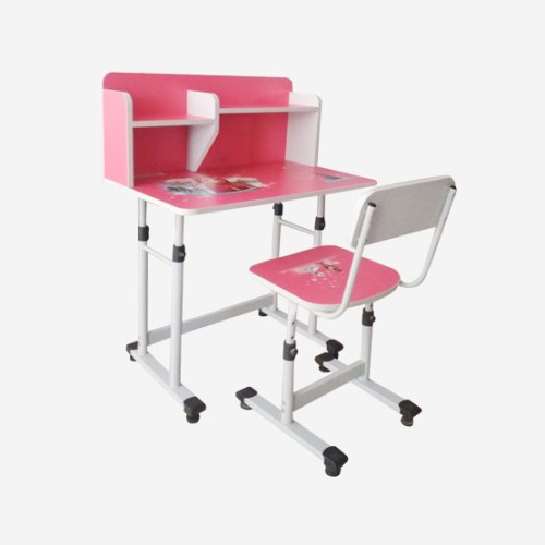 - Bộ bàn học sinh ghế rời. Khung bàn ống thép sơn. Mặt gỗ MFC chống xước, bàn liền giá sách, có in hình nhân vật hoạt hình. Cơ cấu tăng chỉnh chiều cao linh hoạt. Có 2 màu: xanh dương, hồng.