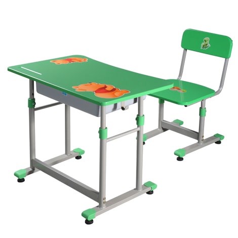 Bộ bàn ghế học sinh khung thép, mặt bàn, đệm tựa ghế gỗ sơn Pu con giống.