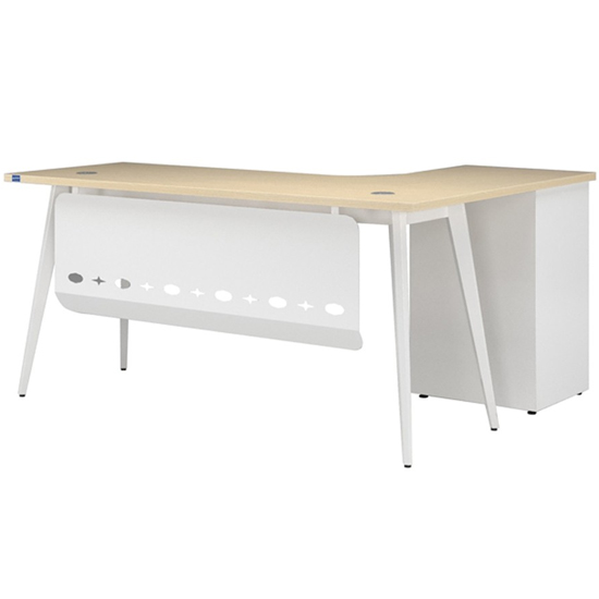 - - Sử dụng chân sắt C10 sơn trắng màu S26 - Mặt bàn gỗ melamine cao cấp màu M6 - Bàn có hộc sắt liền và yếm tôn đột lỗ trang trí - Yếm gỗ sơn trắng S26. - Sản phẩm bàn làm việc LUX1612YC10 thích hợp sử dụng cho không gian phòng làm việc văn phòng. Kích Thước: W1600 x D1200 x H750 mm Chất liệu: Khung thép, mặt gỗ Melamine cao cấp