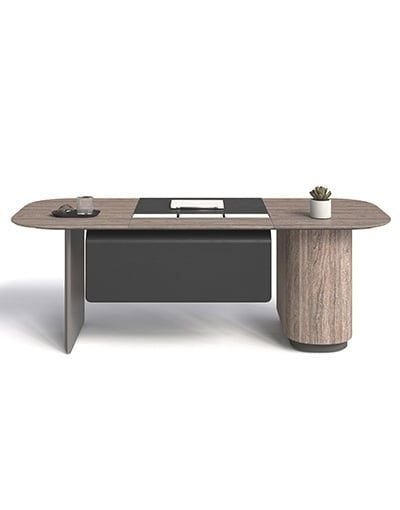 - Bàn lãnh đạo 1914BLD22 là dòng sản phẩm thuộc bộ sưu tập văn phòng mới nhất của Nội Thất 190. Được thiết kế tỉ mỉ, tinh tế trong từng đường nét, phù hợp với các văn phòng làm việc năng động hiện đại. Cấu trúc sản phẩm Kích thước: W2200 x D900 x H760mm Chất liệu: Bàn lãnh đạo có 1 hộc, mặt bàn gỗ MFC 2 lớp, lớp trên dày 17mm cạnh vát chéo có ghép tấm da ở giữa, lớp dưới dày 25mm. Chân làm từ inox tấm mờ màu ghi dập ép tạo hình chỏm cầu. Yếm bàn làm từ khung sắt bọc da. Có máng điện và ổ điện.