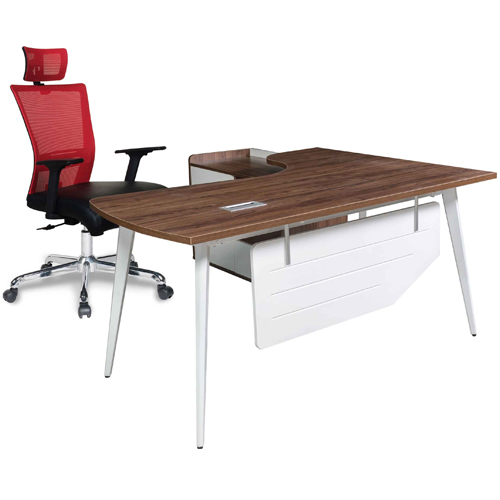 - - Bàn sử dụng khung thép dập định hình sơn tĩnh điện - Mặt gỗ Melamine cao cấp. - Yếm bàn sơn PU. - Bàn có tủ phụ đi kèm. - Sản phẩm bàn giám đốc LUXP160C10 sử dụng trong phòng giám đốc, phòng lãnh đạo tạo sự uy nghiêm cho người lãnh đạo. Kích Thước: W1600 x D1850 x H750 mm Chất liệu: Khung thép, mặt gỗ Melamine cao cấp