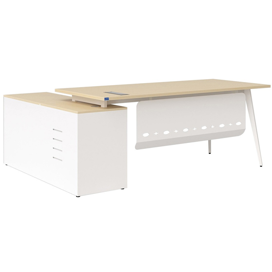 - - Bàn sử dụng chân C10 kết hợp yếm sắt cắt họa tiết trang trí, sơn màu trắng S26 - Mặt gỗ Melamine cao cấp màu M14. - Sản phẩm bàn lãnh đạo LUXP1880YC10 kết hợp với ghế Hòa Phát sử dụng trong phòng giám đốc, phòng lãnh đạo tạo sự uy nghiêm cho người lãnh đạo. Kích Thước: W1880 x D800 x H750 mm Chất liệu: Khung thép, mặt gỗ Melamine cao cấp