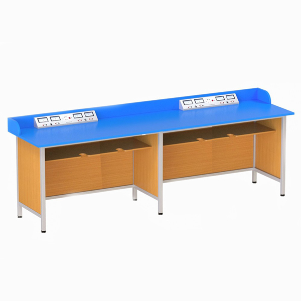 - Kích thước: W2400 x D600 x H750 mm Chất liệu: Khung ống thép sơn tĩnh điện, mặt composite, ốp vách gỗ melamine. Kiểu dáng: Bàn thí nghiệm Vật Lý Hòa Phát 4 chỗ + Khung bàn bằng ống thép sơn tĩnh điện. + Mặt bàn composite dày 25mm có độ bên cơ học cao, kết hợp ốp vách gỗ melamine. + Bàn có 02 hộp điện tích hợp đồng hồ đo ampeke + Vol kế AC và DC kèm ổ cắm điện tiện dụng.