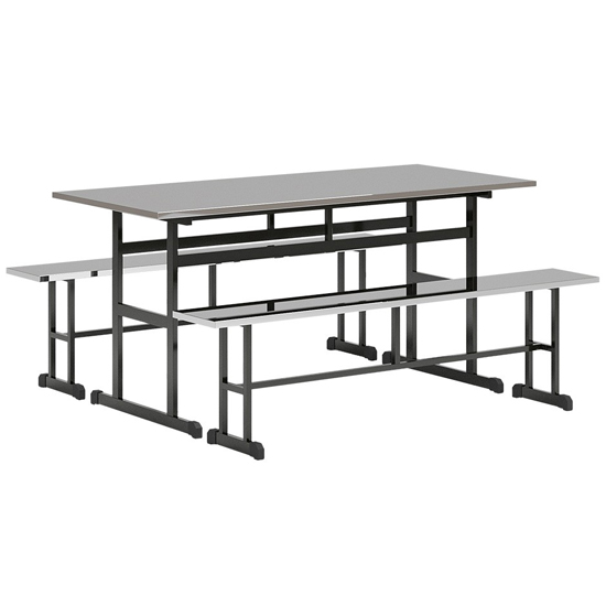 - - Bàn ăn chuyên dụng dành cho 6 người - Khung thép sơn tĩnh điện. - Mặt bàn và mặt ghế inox cao cấp - Bàn gồm 01 bàn + 02 băng ghế - Sản phẩm lắp ráp rời thuận lợi cho việc di chuyển tháo lắp. - Sản phẩm Bộ bàn ăn công nghiệp BA05 sử dụng cho khu công cộng như nhà ăn dành cho công nhân, nhà ăn tập thể trường học, quán ăn, nhà hàng... Kích Thước: W1600 x D700 x H750 mm Chất liệu: - Khung thép sơn tĩnh điện - Mặt bàn và mặt ghế inox