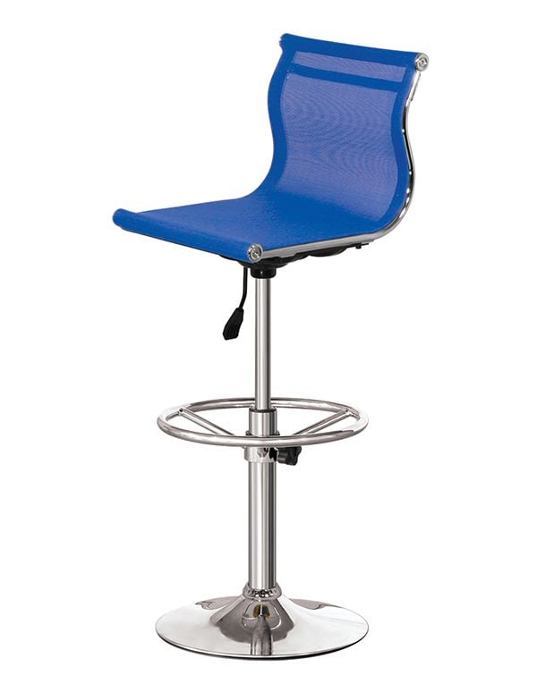 - Ghế B05 của Nội Thất 190 thuộc dòng ghế quầy bar với thiết kế lưng trung, mặt lưới êm ái và thoáng khí. Khung chân thép mạ Niken - Crom giúp đảm bảo về độ bền và tính linh hoạt sản phẩm. Cấu trúc sản phẩm Kích thước: W400xD430xH(940-1180) mm Màu sắc: Xanh lam Chất liệu: Mặt ghế lưới - Chân thép mạ