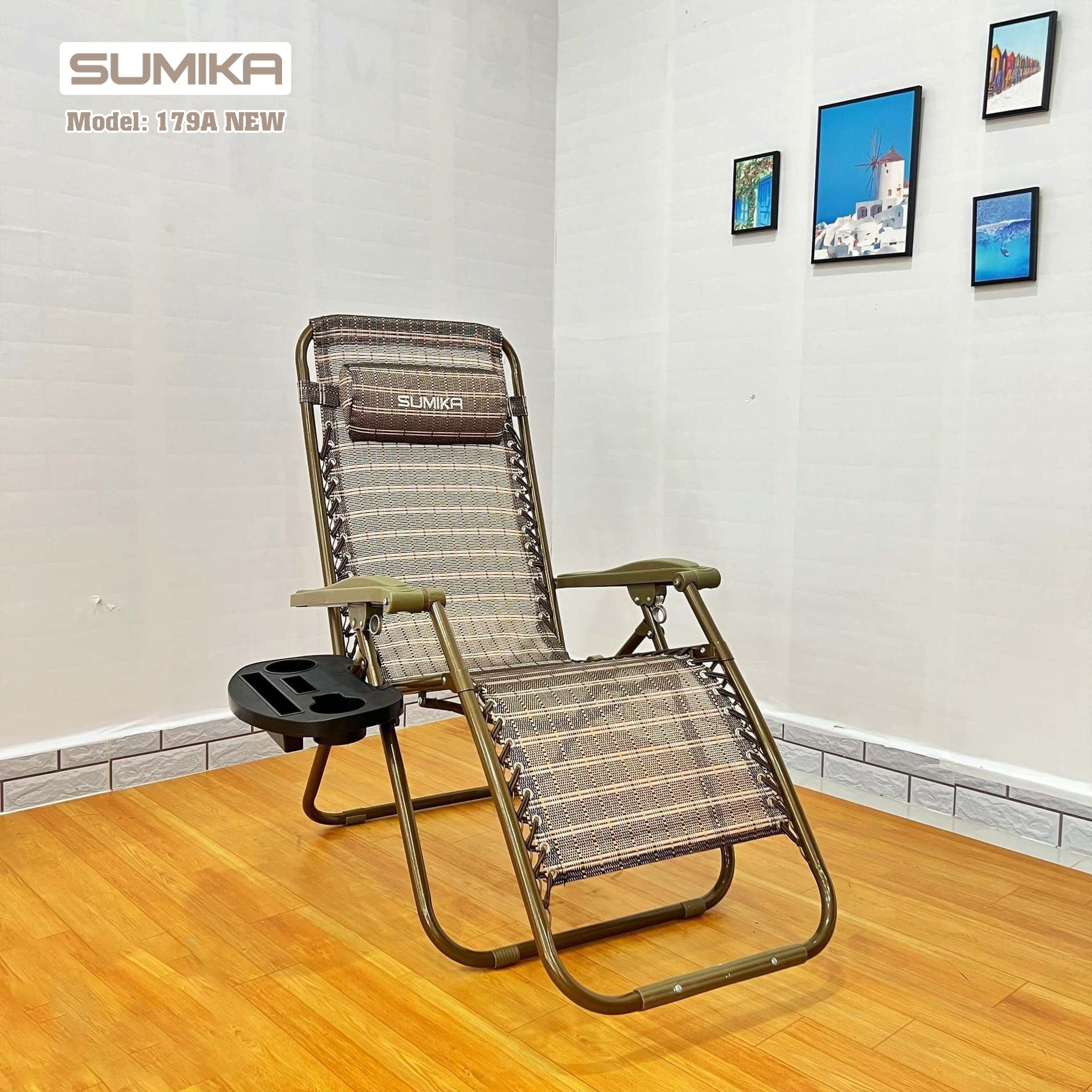 - - Thương hiệu: Sumika - Chất liệu: Vải lưới Textilene + khung ghế bằng thép - Kích thước mở: 180x67x40cm - Kích thước gấp: 67x96x15cm - Tải trọng: 300kg - Khóa bằng nhựa - Công nghệ: Nhật Bản - Bảo hành: 12 tháng
