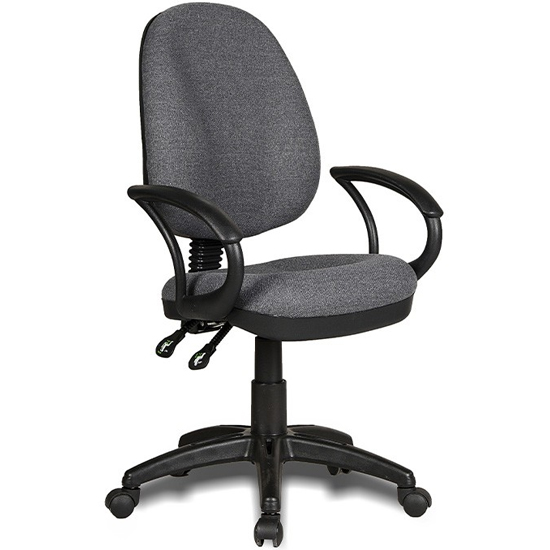 - - Ghế xoay bọc nỉ tựa rời - Tay vịn kiểu cách hiện đại - Cụm chân ghế được thiết kế sử dụng bộ piston khí nén có thể điều chỉnh được độ cao thấp. - Mặt ngồi có lớp đệm mút êm ái. - Chân xoay có bánh xe, có thể di chuyển. Kích Thước: W610 x D(580-1010) x H(1040-1165)mm Chất liệu: Bọc vải, chân và tay bằng nhựa. Ghế sửa dụng bát 2 cần có thể ngả tựa được nhiều góc độ.