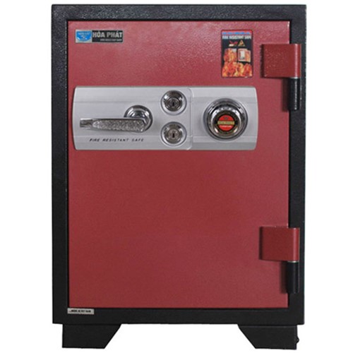 - Két đứng, 1 cánh mở với 2 bản lề nổi lớn, 2 bộ khóa chìa, 1 bộ khóa mã, mặt nạ hộp nhựa, và có tay nắm. Cánh mở với 6 chốt chìm. Lòng két có 1 đợt di động và 1 ngăn kéo có khóa. Két có bánh xe sắt di chuyển. - Trọng lượng ~110kg. - Bảo hành 36 tháng. - KT NGOÀI 481 x 560 x 677 - KT TRONG 333 x 340 x 461
