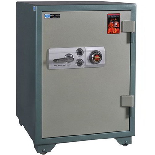 - Két đứng, 1 cánh mở với 2 bản lề nổi lớn, 2 bộ khóa chìa, 1 bộ khóa mã, mặt nạ hộp nhựa, và có tay nắm. Cánh mở với 6 chốt chìm. Lòng két có 1 đợt di động và 1 ngăn kéo có khóa. Két có bánh xe sắt di chuyển. - Trọng lượng ~135 kg(±10%) - Bảo hành 36 tháng. - KT NGOÀI 481 x 560 x 761 - KT TRONG 333 x 340 x 545