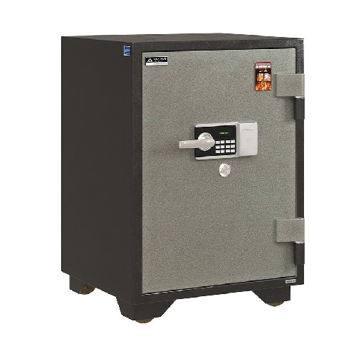 - Két đứng, 1 cánh mở với 2 bản lề nổi lớn, 1 bộ khóa chìa, 1 bộ khóa điện tử, và có tay nắm. Cánh mở với 7 chốt chìm. Lòng két có 1 đợt di động và 1 ngăn kéo có khóa. Két có bánh xe sắt di chuyển. - Trọng lượng ~168kg. - Bảo hành 24 tháng. KT NGOÀI 616 x 600 x 868 KT TRONG 423 x 374 x 608