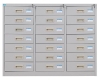 - Kiểu Dáng - Tủ ghép thấp, tủ tài liệu - Tủ gồm 3 khoang, mỗi khoang có 7 ngăn kéo, dùng chung 1 thanh khóa dàn. - Sản phẩm tủ sắt TU118-21D thường dùng trong các văn phòng, công sở hiện đại để lưu trữ hồ sơ, tài liệu. Kích Thước: W1180 x D407 x H915 mm Chất liệu: sắt sơn tĩnh điện