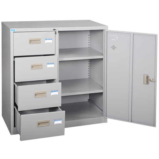 - Kiểu Dáng - Tủ ghép thấp, tủ tài liệu sắt - Tủ gồm 2 khoang: + 1 Khoang cánh sắt mở, bên trong có 2 đợt di động. + 1 khoang 4 ngăn keó sử dụng chung 1 thanh khóa dàn. - Sản phẩm tủ sắt hòa phát TU88-4D thường dùng trong các văn phòng, công sở hiện đại để lưu trữ hồ sơ, tài liệu. Kích Thước: W880 x D407 x H915 mm Chất liệu: sắt sơn tĩnh điện