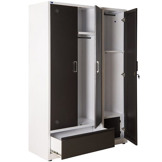 - - Tủ sắt gia đình sơn tĩnh điện Hòa Phát - Tủ sắt thiết kế gồm 2 khoang lớn và 1 ngăn kéo. - Khoang bên trái gồm 1 đợt cố định và 1 suốt treo quần áo - khoang bên phải gồm 1 đợt di động, 1 ngăn phụ có khóa và 1 suốt treo quần áo. Kích Thước: W1350 x D500 x H1970 mm Chất liệu: Sắt sơn tĩnh điện