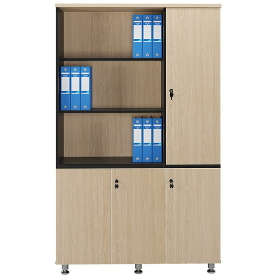 - - Tủ thiết kế 2 buồng gỗ Melamine cao cấp - Phía trên có 3 khoang tài liệu không cánh và 1 khoang treo áo. - Phía dưới có 3 khoang cánh mở và có khóa. - Sử dụng tay nắm vát cạnh và có khóa. - Tủ không dùng cánh kính. - Chân tủ tăng chỉnh tiện dụng - Sản phẩm Tủ hồ sơ LE1960-3B kết hợp với bàn làm việc phù hợp với mọi không gian văn phòng làm việc. Kích Thước: W1200 x D400 x H1960 mm Chất liệu: Gỗ công nghiệp phủ Melamine cao cấp