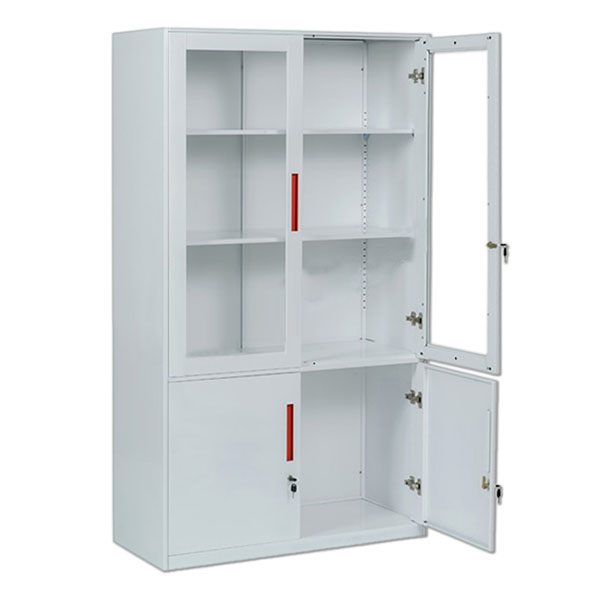 - Màu sắc: trắng S26 Kích thước : W1000 x D450 x H1830 mm (±5mm) Chất liệu: Sắt sơn tĩnh điện. Tay nắm nhựa Kiểu dáng: Tủ hồ sơ để tài liệu. Khoang trên cánh kính trong có 2 đợt di động. Khoang dưới 2 cánh mở