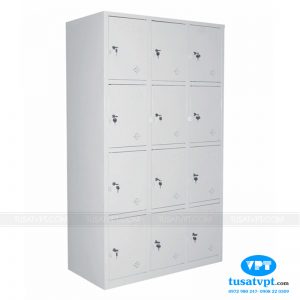 - Tủ Locker 12 ngăn, tủ sắt 12 ngăn Vương Phú Thọ được thiết kế cánh mở sử dụng khóa locker chắc chắn, nhiều ngăn thích hợp cho văn phòng, trường học, nhà máy, phòng gym, siêu thị… Tủ được phủ sơn tĩnh điện, chống gỉ sét, bền đẹp, bảo hành đến 24 tháng. Kích thước, màu sắc, số ngăn được thiết kế và sản xuất theo yêu cầu. Tủ Locker 12 ngăn 84-3K Kích thước : W 915 x D450 x H1830 Tủ được sơn tĩnh điện chống rỉ sét. Tủ được chia thành 12 cánh cửa, 12 khoang. Trên cánh tủ có lỗ thông hơi và bảng tên nhân viên Mỗi ngăn có một ổ khóa riêng với 2 chìa khóa, có pát khóa phụ. Sản xuất theo kích thước yêu cầu. Đặc biệt: Chống lấy cắp đồ
