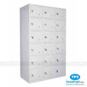 - Tủ Locker 18 ngăn, tủ sắt 18 ngăn Vương Phú Thọ được thiết kế cánh mở sử dụng khóa locker chắc chắn, nhiều ngăn thích hợp cho văn phòng, trường học, nhà máy, phòng gym, siêu thị… Tủ được phủ sơn tĩnh điện, chống gỉ sét, bền đẹp, bảo hành đến 24 tháng. Kích thước, màu sắc, số ngăn được thiết kế và sản xuất theo yêu cầu. Tủ Locker 18 ngăn Kích thước : W 915 x D450 x H1830 Tủ được sơn tĩnh điện chống rỉ sét. Tủ được chia thành 18 cánh cửa, 18 khoang. Trên cánh tủ có lỗ thông hơi, bẳng tên và bảng tên nhân viên Mỗi ngăn có một ổ khóa riêng với 2 chìa khóa, có pát khóa phụ. Sản xuất theo kích thước yêu cầu.