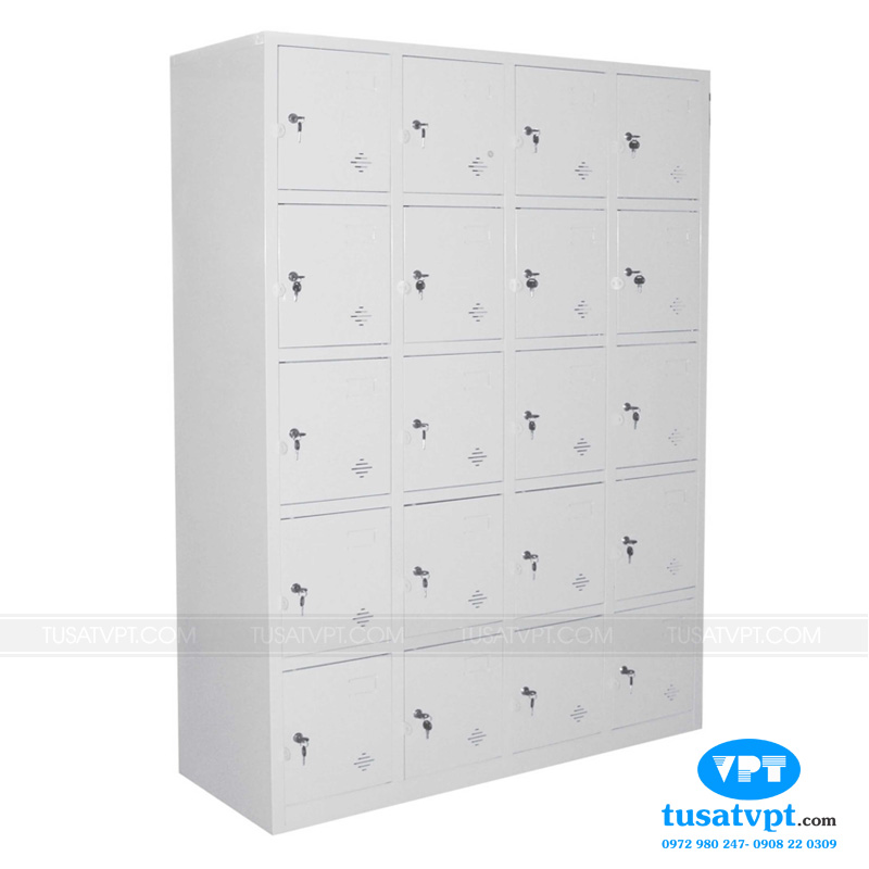 - ** GIÁ ĐÃ BAO GỒM VAT. - Kích thước:W1200 x D450 x H1830 - Tủ locker được thiết kế toàn bộ bằng đố nổi, rất chắc chắn - Tủ được chia thành 4 khoang , có pát khóa, lỗ thông gió, bảng tên nhân viên, có 20 cánh cửa, khóa riêng biệt, toàn bộ tủ được sơn tĩnh điện màu xám chuẩn - THƯƠNG HIỆU: VPT