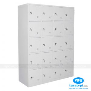 - Tủ Locker 20 ngăn, tủ sắt 20 ngăn Vương Phú Thọ được thiết kế cánh mở sử dụng khóa locker chắc chắn, nhiều ngăn thích hợp cho văn phòng, trường học, nhà máy, phòng gym, siêu thị… Tủ được phủ sơn tĩnh điện, chống gỉ sét, bền đẹp, bảo hành đến 24 tháng. Kích thước, màu sắc, số ngăn được thiết kế và sản xuất theo yêu cầu. Tủ Locker 20 ngăn Kích thước : W 1200 x D450 x H1830 Tủ được sơn tĩnh điện chống rỉ sét. Tủ được chia thành 20 cánh cửa, 20 khoang. Trên cánh tủ có lỗ thông hơi, bẳng tên và bảng tên nhân viên Mỗi ngăn có một ổ khóa riêng với 2 chìa khóa, có pát khóa phụ. Sản xuất theo kích thước yêu cầu.