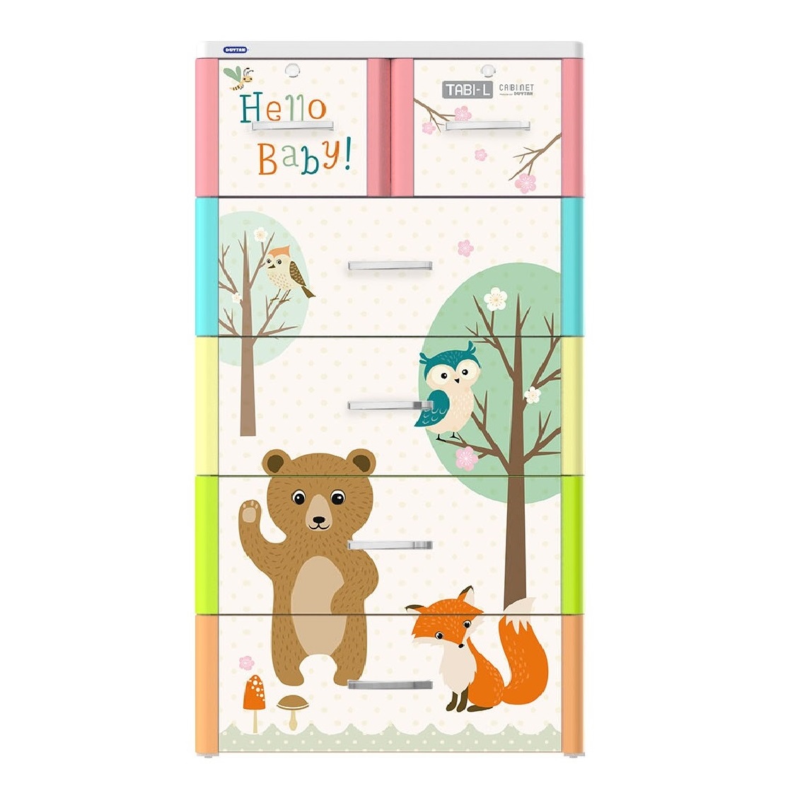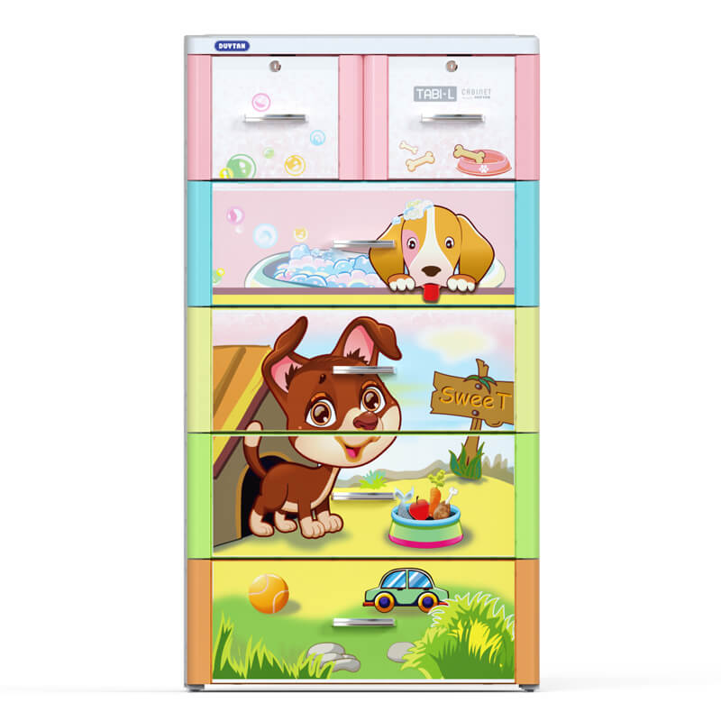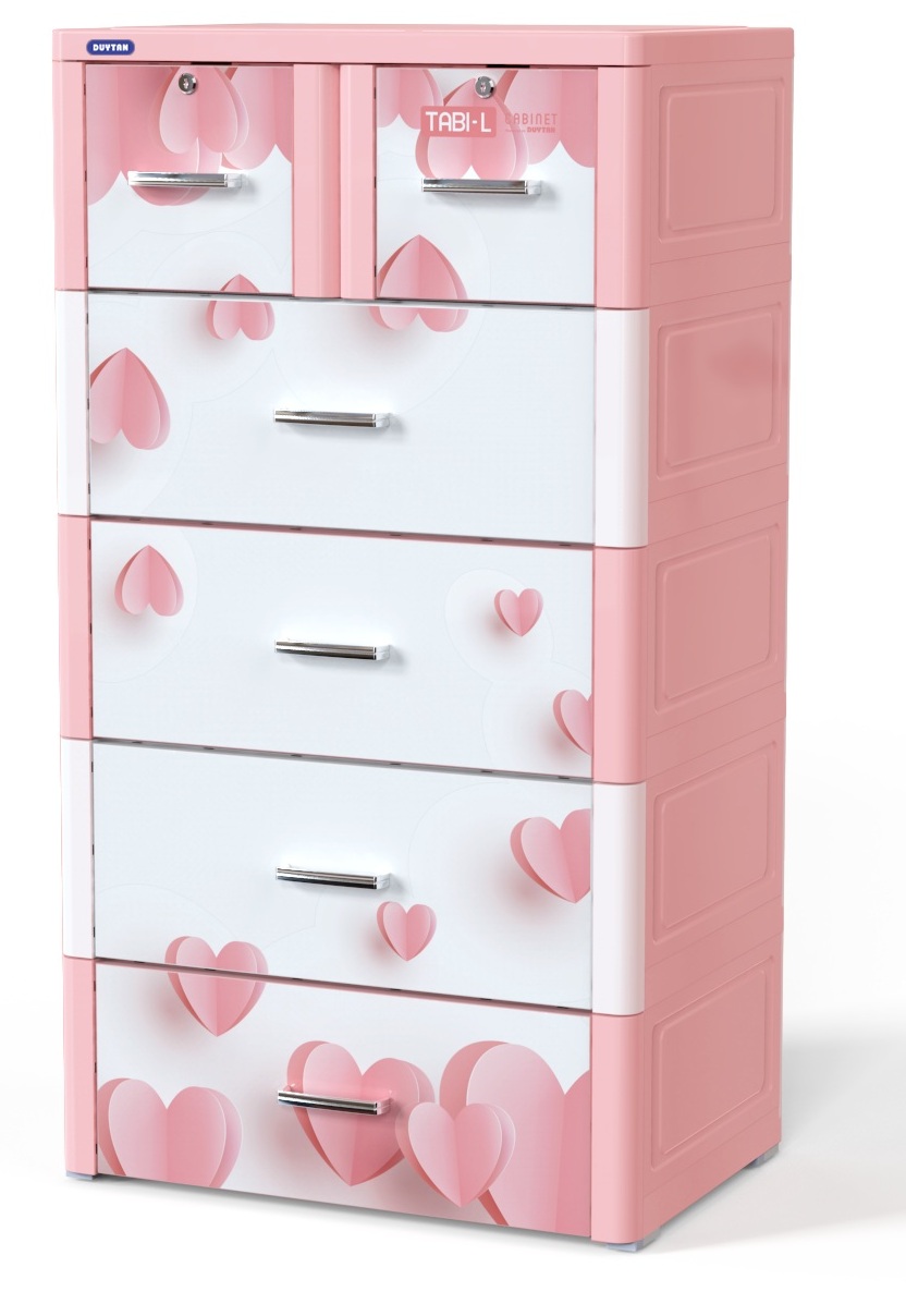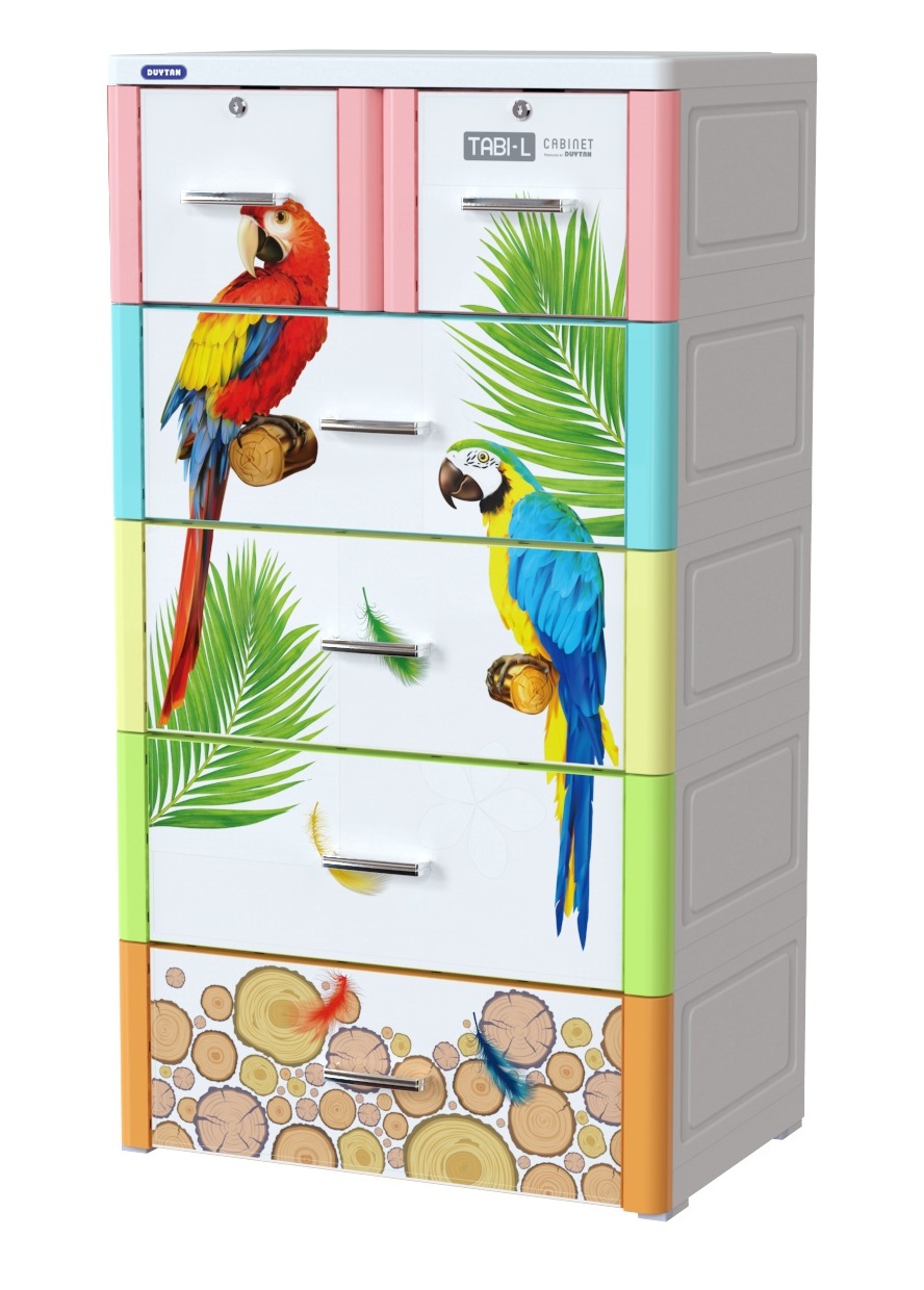 - - Mẫu sản phẩm: Tabi-L - Thương hiệu: Tủ nhựa Duy Tân - Kích thước: Rộng 70cm x Sâu 48cm x Cao 130cm - Thiết kế: 5 tầng, 6 ngăn kéo, có khóa đóng mở, kiểu dáng sang trọng, họa tiết trang trí rất đẹp.