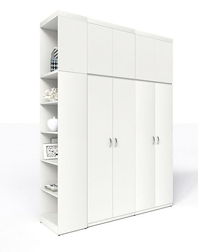 - Tủ quần áo gỗ TGA01 của Nội Thất 190 bao gồm hệ tủ và kệ trang trí. Sự đa dạng màu gỗ giúp sản phẩm có thể được dễ dàng kết hợp trong mọi không gian. Tủ quần áo gồm 2 khoang cánh mở, mỗi khoang có 1 suốt treo áo và 4 ô để đồ. Tủ phía trên gồm 2 khoang cánh mở. Kệ bên hông tủ được chia làm 6 khoang để đồ trang trí. Ngoài ra, sản phẩm có thể đặt làm kích thước theo yêu cầu. Cấu trúc sản phẩm Kích thước tủ quần áo: W1600xW600xH2000 (mm) Kích thước tủ đỉnh: W2000xW600xH600 (mm) Kích thước kệ góc: W400xW600xH2600 (mm) Màu sắc: M3, M5, M6 Chất liệu: Gỗ MFC dày 17mm