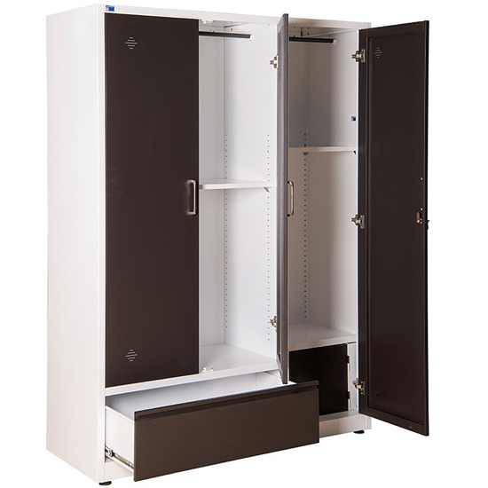 - - Tủ gồm 2 khoang lớn và 1 ngăn kéo - Khoang bên trái gồm 1 đợt cố định và 1 suốt treo quần áo. - Khoang bên phải gồm 1 đợt di động, 1 ngăn phụ có khóa và 1 suốt treo quần áo - Sản phẩm tủ sắt gia đình hòa phát TU17B2C3 phục phụ cho đối tượng cá nhân, gia đình Kích Thước: W1350 x D500 x H1850 mm Chất liệu: Sắt sơn tĩnh điện