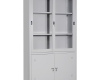 - Sản phẩm gồm 2 phần: phần trên của tủ gồm 2 cánh kính mở khung sắt, có khóa và bên trong có 2 đợt tủ di động. Phần dưới tủ gồm 2 khoang sắt mở và 2 khóa riêng.